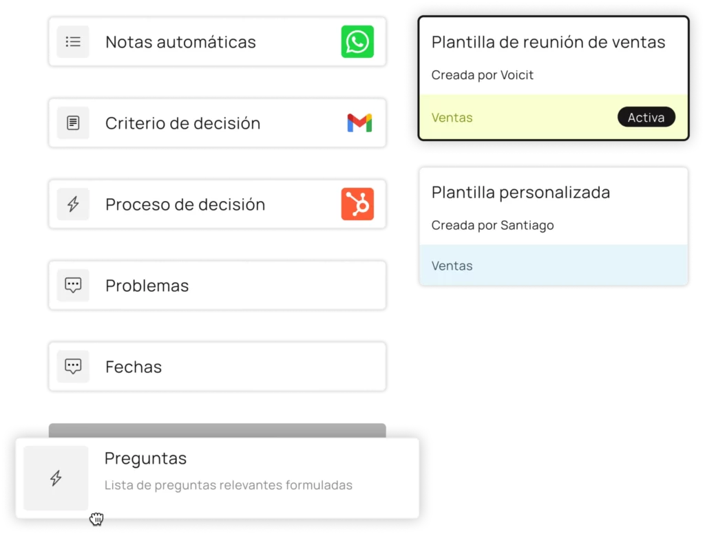 Utiliza la plantilla de Voicit diseñada para seguimiento de clientes o crea tu propia plantilla para indicar qué información te interesa extraer.